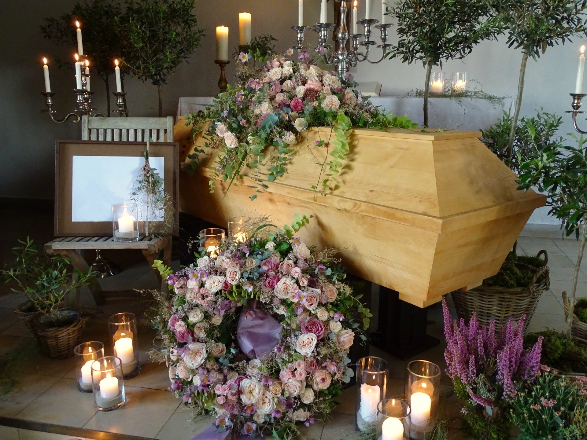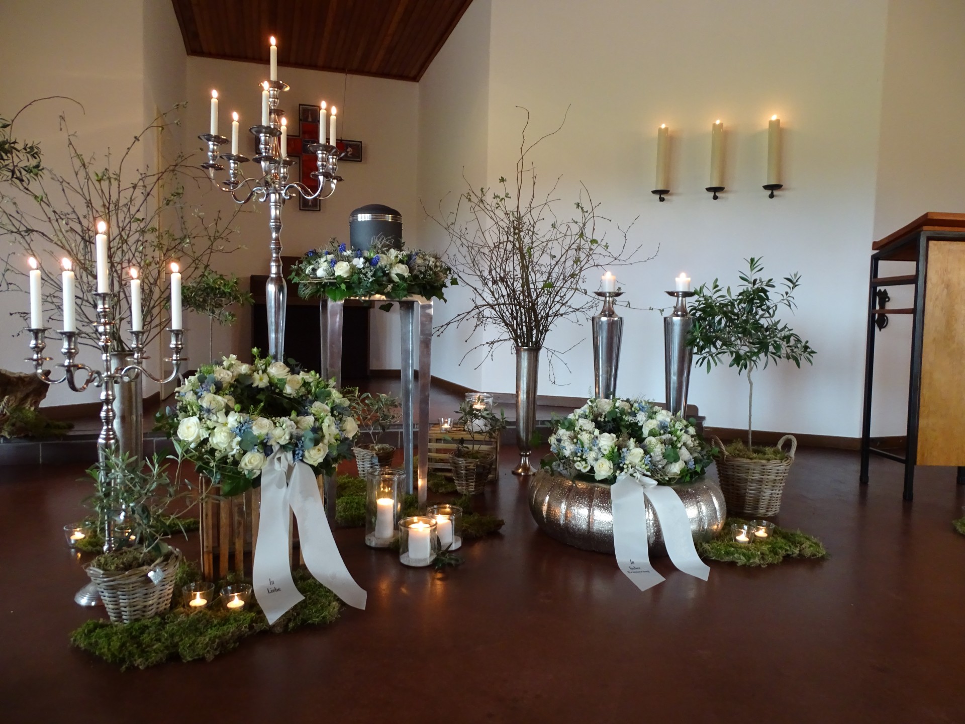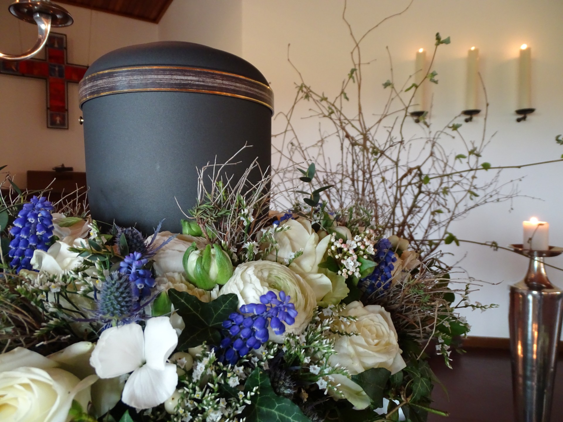 Wir sind mit viel Engagement und Kreativität für Sie da. Immer wieder hören wir, dass unsere Arrangements eine schöne Atmosphäre und wertvolle Erinnerungen schaffen. Das gelingt uns beispielsweise mit Accessoires aus dem Berufsleben oder Dekorationen, die Bezug auf das geliebte Hobby nehmen. Wenn Sie es wünschen, unterstützen wir Sie: mit besonderen Dekorationen, stimmungsvoller Musik oder individuellen Abschiedsritualen.