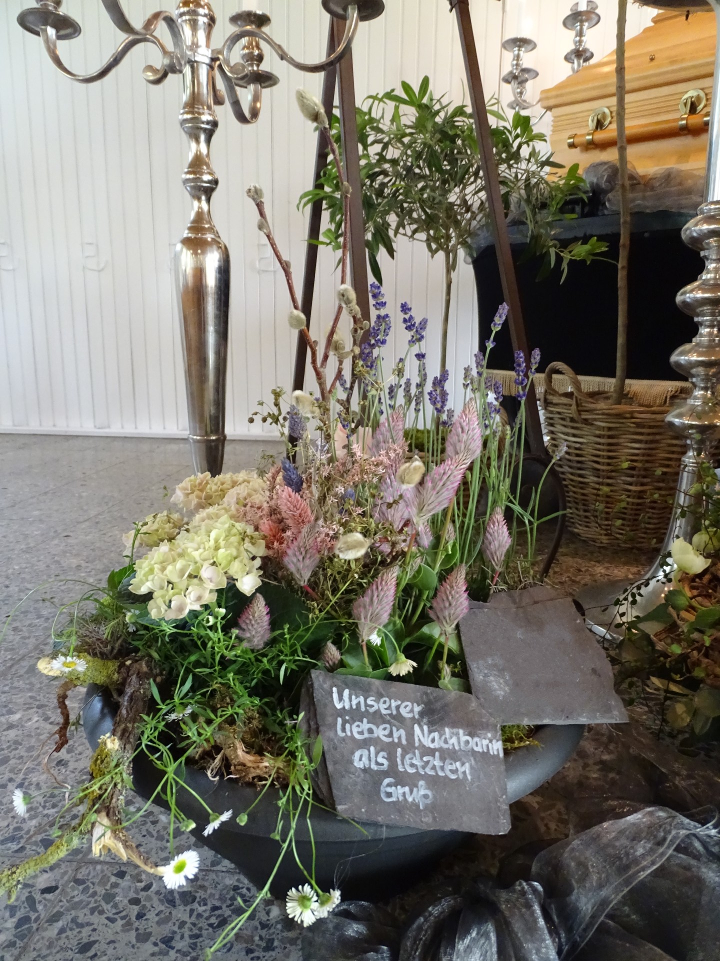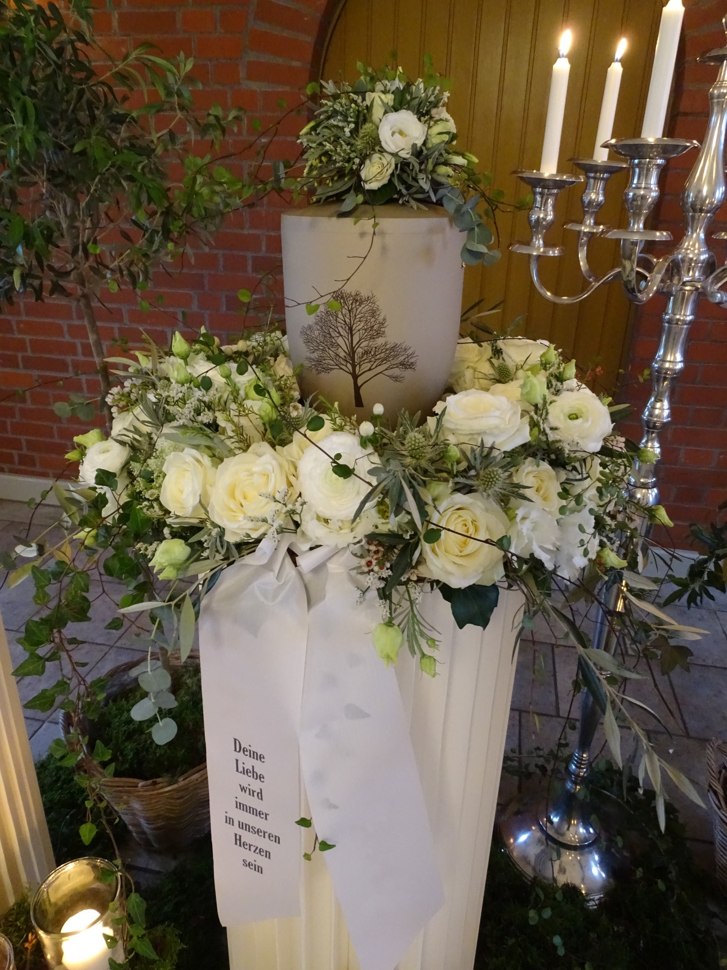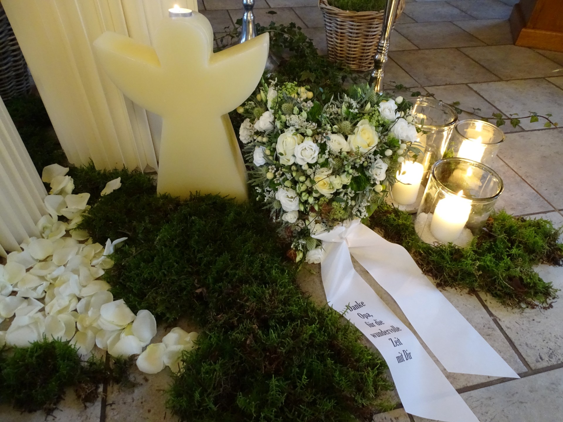Wir sind mit viel Engagement und Kreativität für Sie da. Immer wieder hören wir, dass unsere Arrangements eine schöne Atmosphäre und wertvolle Erinnerungen schaffen. Das gelingt uns beispielsweise mit Accessoires aus dem Berufsleben oder Dekorationen, die Bezug auf das geliebte Hobby nehmen. Wenn Sie es wünschen, unterstützen wir Sie: mit besonderen Dekorationen, stimmungsvoller Musik oder individuellen Abschiedsritualen.