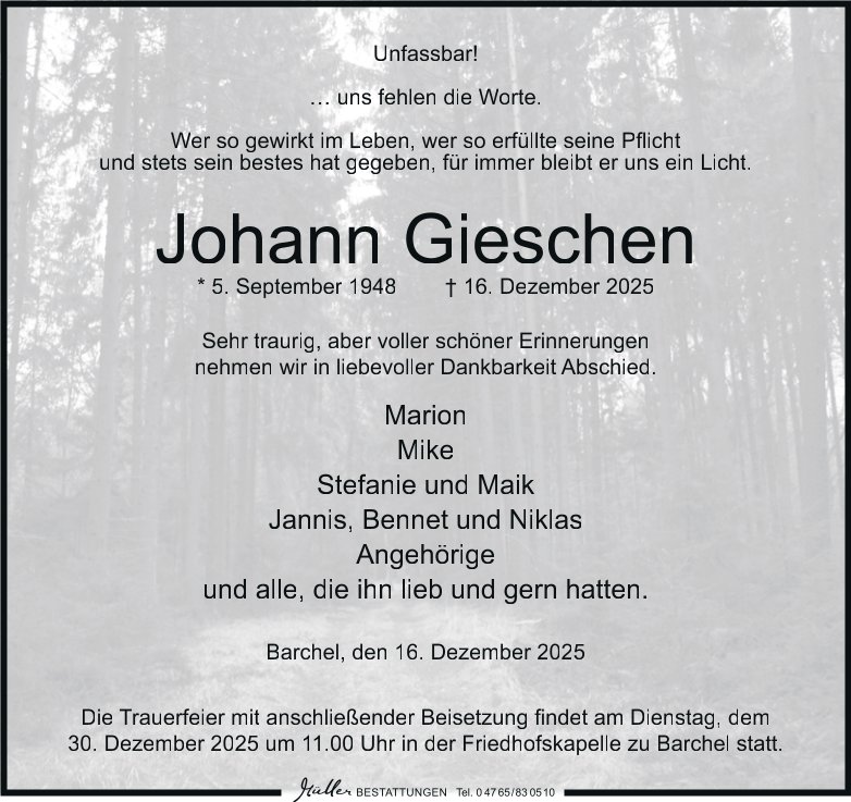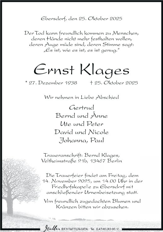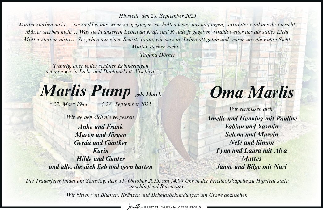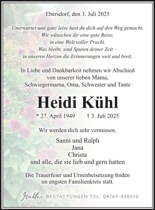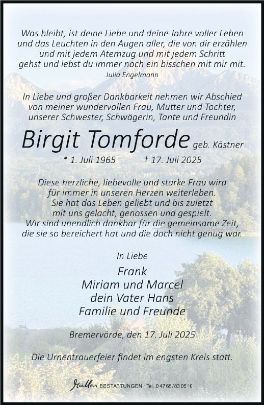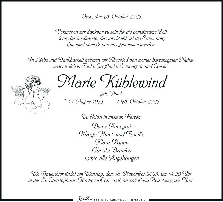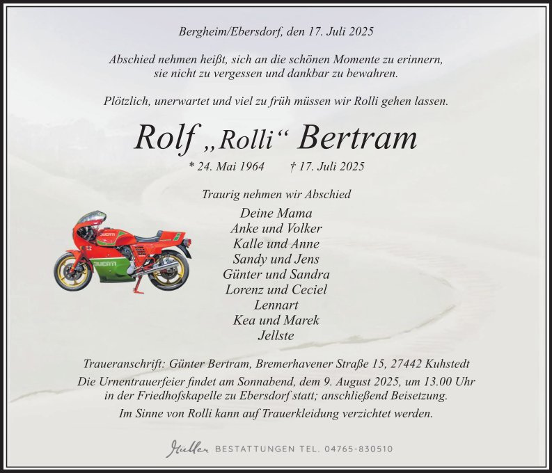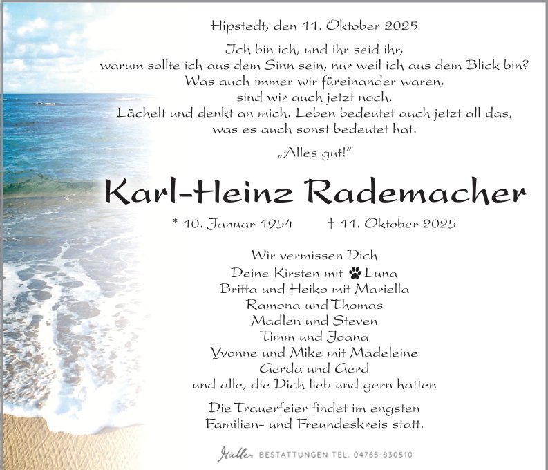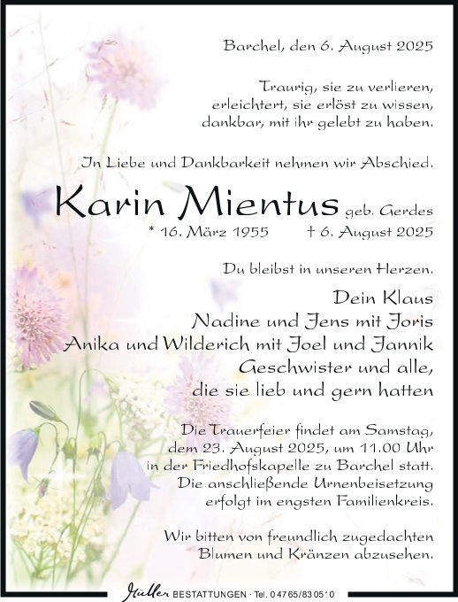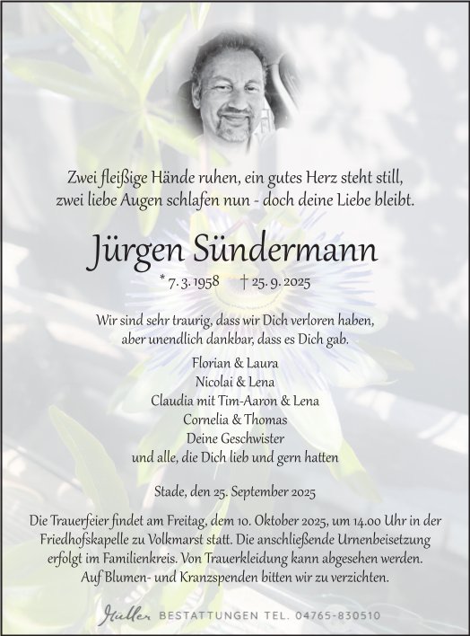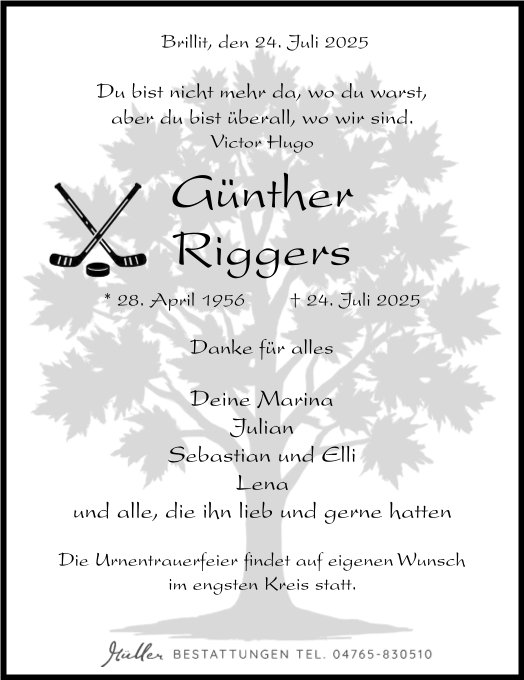 Die Trauerfeier findet am 5. November 2022 um 11.00 Uhr in der Findorff-Kirche zu Iselersheim statt.