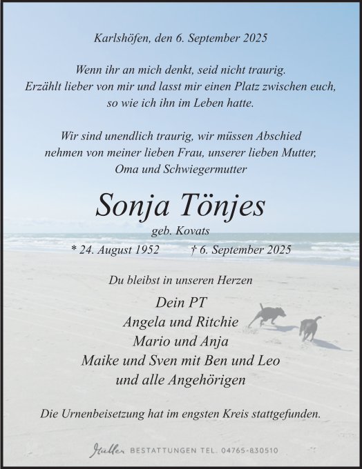 Die anschließende Urnenbeisetzung erfolgt im Familien- und Freundeskreis.