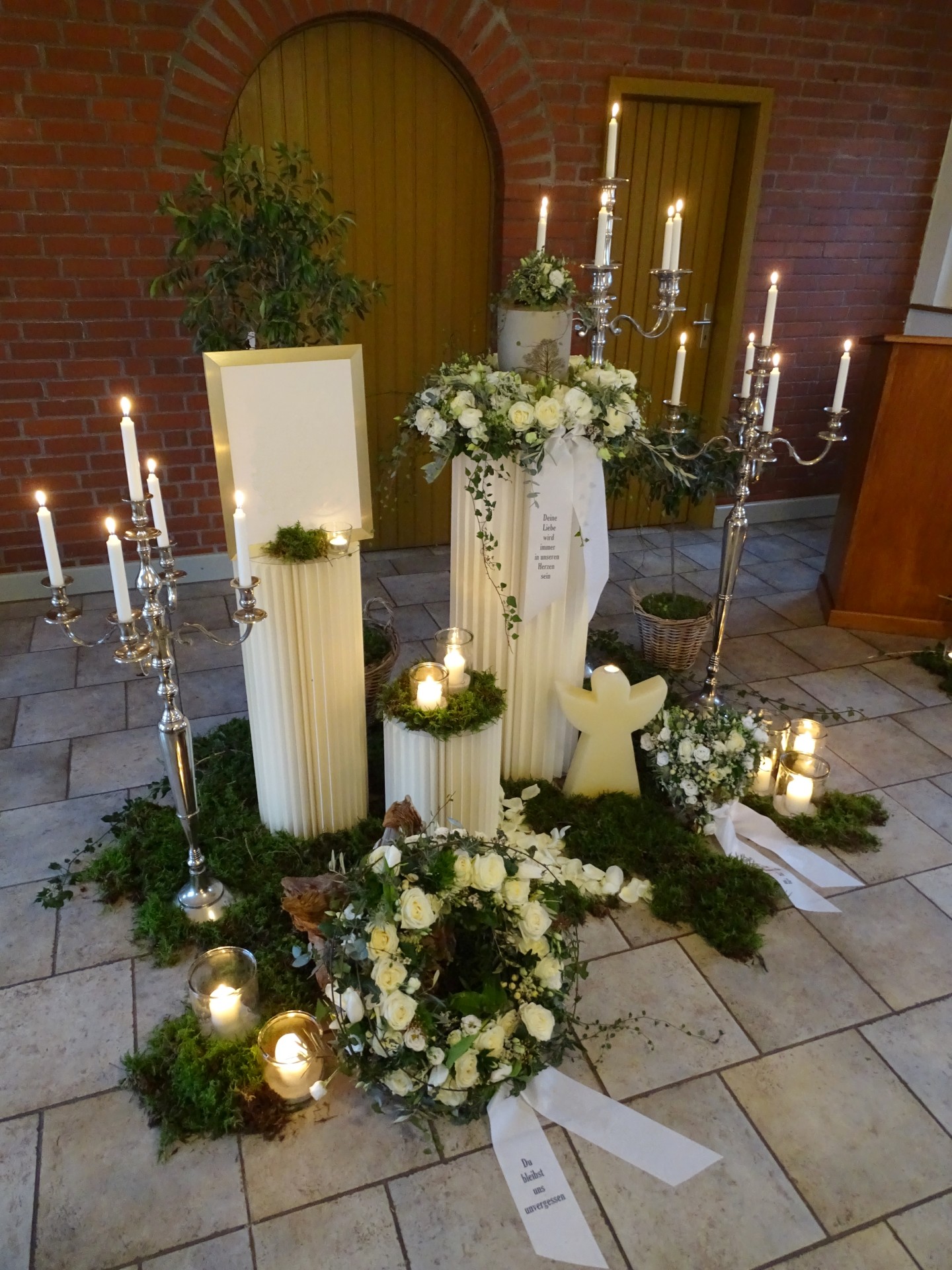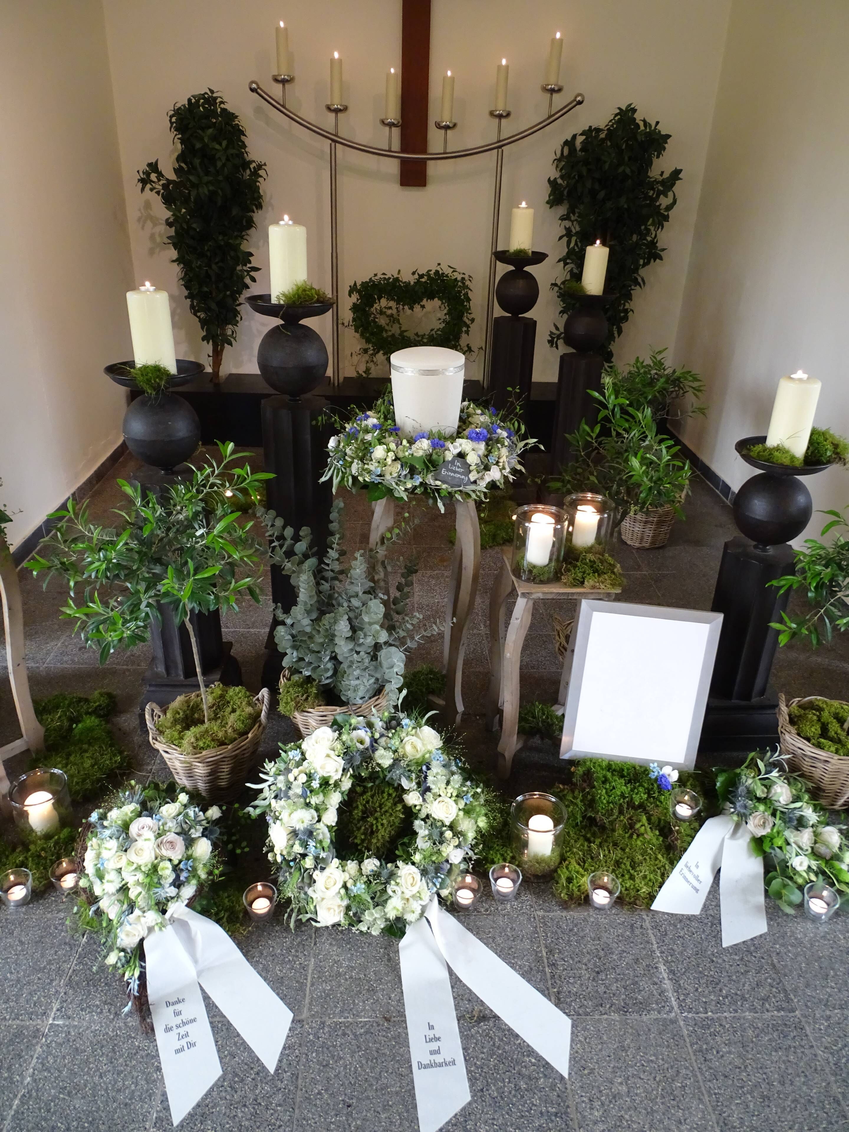 Wir sind mit viel Engagement und Kreativität für Sie da. Immer wieder hören wir, dass unsere Arrangements eine schöne Atmosphäre und wertvolle Erinnerungen schaffen. Das gelingt uns beispielsweise mit Accessoires aus dem Berufsleben oder Dekorationen, die Bezug auf das geliebte Hobby nehmen. Wenn Sie es wünschen, unterstützen wir Sie: mit besonderen Dekorationen, stimmungsvoller Musik oder individuellen Abschiedsritualen.
